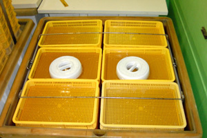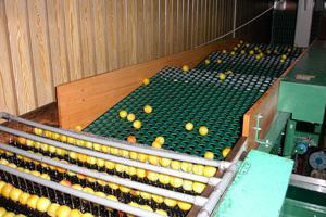 収穫した梅を水に漬けた後洗浄し、大きさ別に