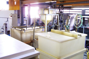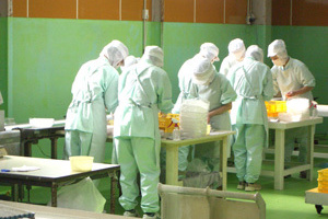 原料梅の洗浄 バブル、シャワーにて洗浄します。