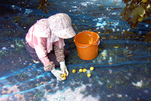 収穫は主に完全に熟して木から落下した梅を収穫します。
